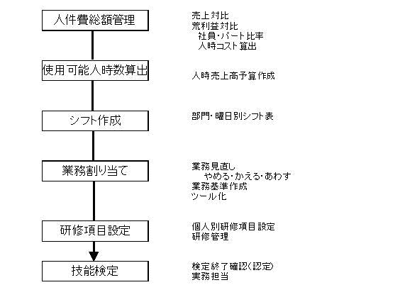 更に「強い意志」とならなかったのは、店舗計画時における明確な部門運営の数値目標等(使用人時数、部門使用人時予算、人件費予算、それによるパート比率、担当業務の範囲等)が部門運営のレベルで明確化されていなかったことによると考えられる。